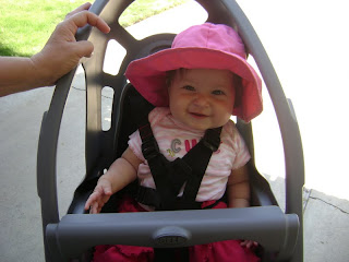 Oma has a really sweet bike! A couple weeks ago, Opa came home with an even sweeter bike seat for the back of it! We had to try it out!